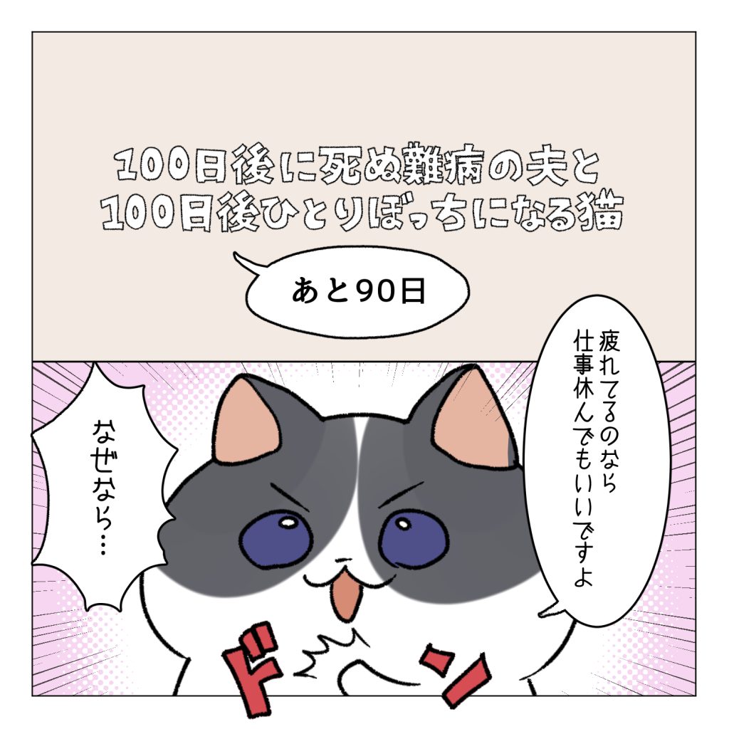 スポンサーリンクおすすめ記事防御力最強おねぇさんマタハラする上司のせいで会社が死ぬほど嫌い【114...マタハラする上司のせいで会社が死ぬほど嫌い【113...【1】一人になった家事猫のこれから連載一覧 【あと89日】100日後に死ぬ難病の夫と100日後にひとりぼっちになる猫2025.08.192025.09.03スポンサーリンクこの漫画は難病で辛い思いをした夫を肯定するために漫画を描きました。また夫がいない今を生きる自分を肯定するために漫画にしました。1番はじめのお話前のお話 他の連載も見てね広告体験談です。いまだに描いてる人むかついてます。続きます…次の更新のお話はこちら 上の画像TAPすると次のお話へ飛べます6