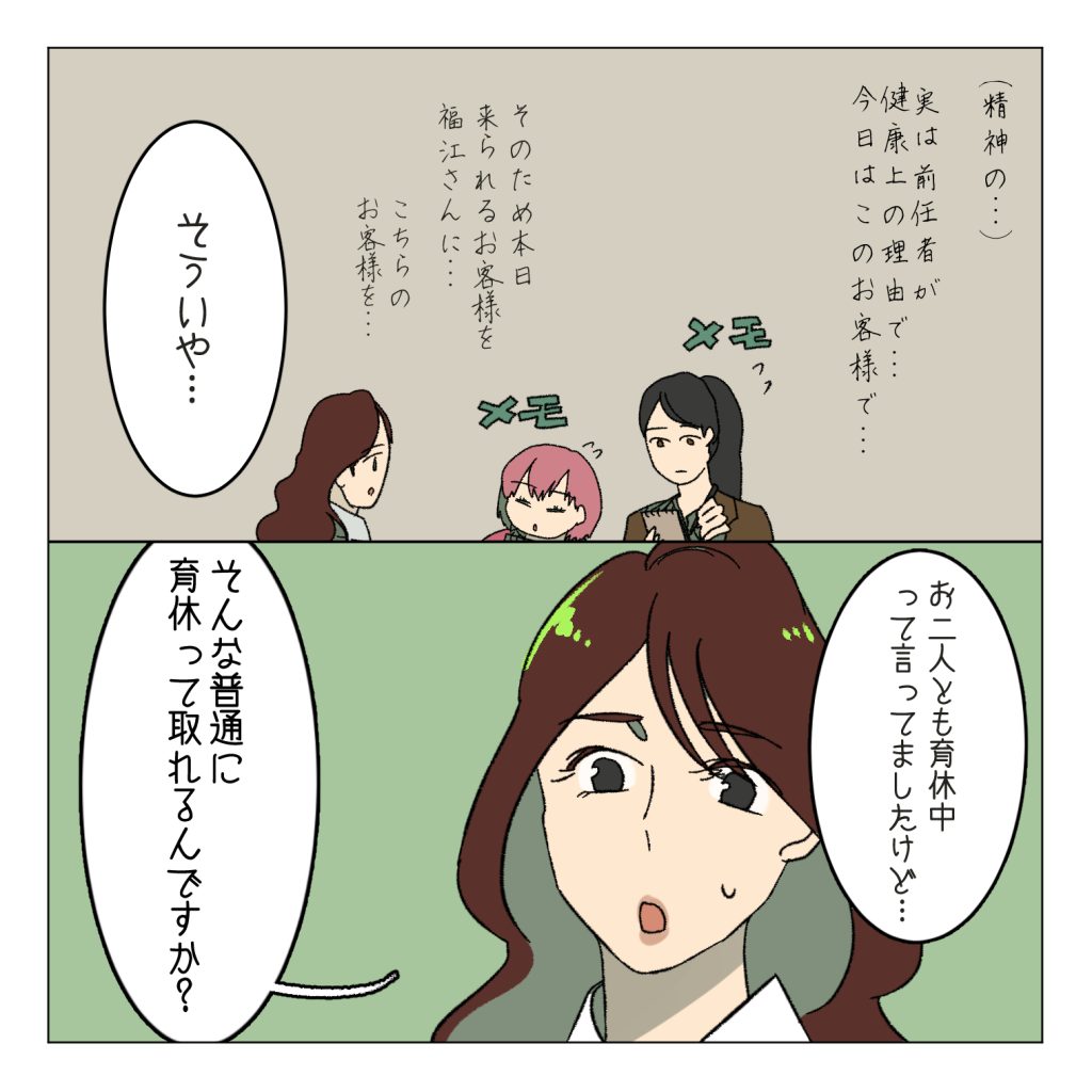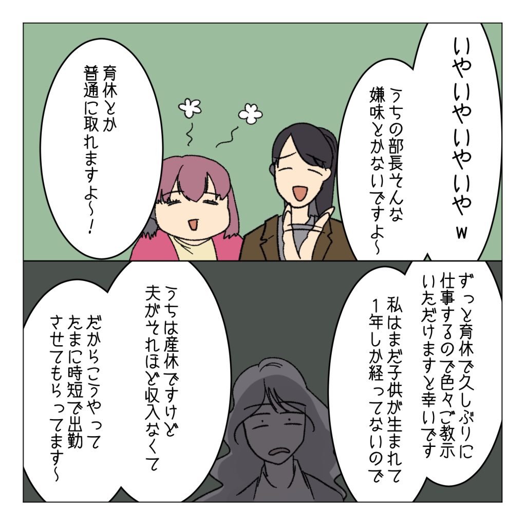 雫は過去のことを振り返る…同じ会社なのに上司の育休産休の考え方の違いに雫は愕然とするのでした…