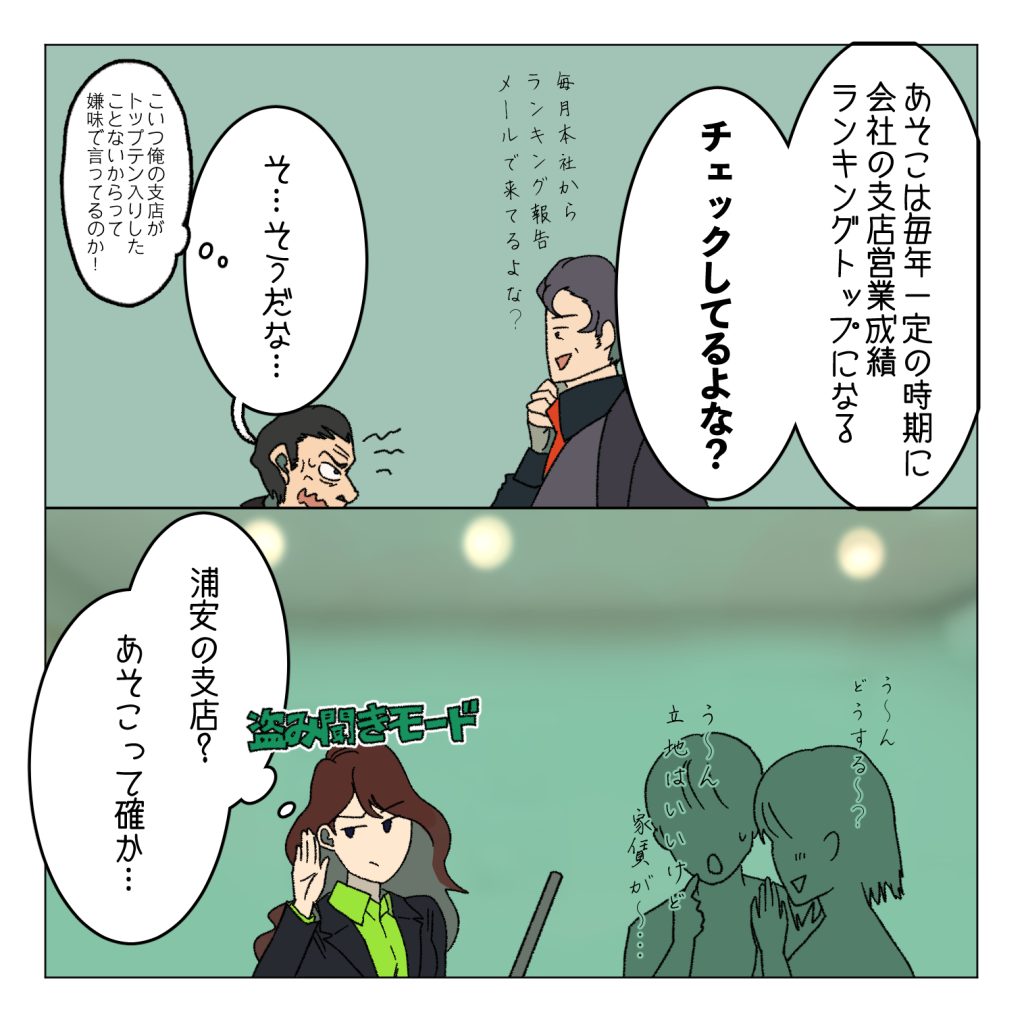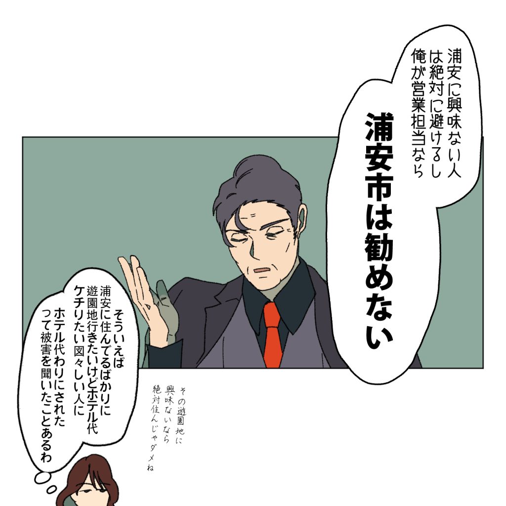 ここで出た話は描いてる人が不動産会社で事務をやっていた時の話です。その会社では浦安支店はトップクラスのお店で