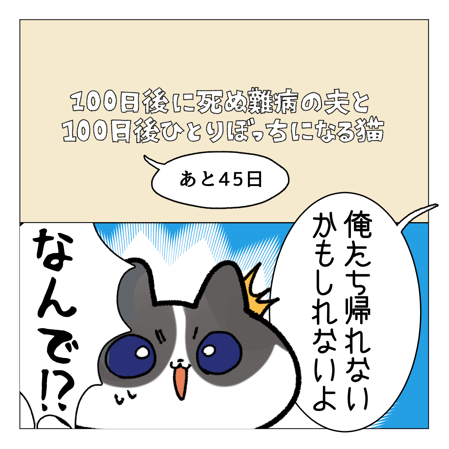 スポンサーリンクおすすめ記事マタハラする上司のせいで会社が死ぬほど嫌い【112...バーで「うっせぇわ」を歌ったら陽キャの洗礼を浴びる...【1】一人になった家事猫のこれから連載一覧AmazonKindle作品 【あと45日】100日後に死ぬ難病の夫と100日後にひとりぼっちになる猫2025.11.152025.11.24スポンサーリンク1話目から前のお話 他の連載も見てね 広告 ヤダ〜帰りたくないけど帰りたい〜 続きます…次の更新のお話はこちら広告上の画像TAPすると次のお話へ飛べますAmazonKindleにて35話まで無料で読めます5
