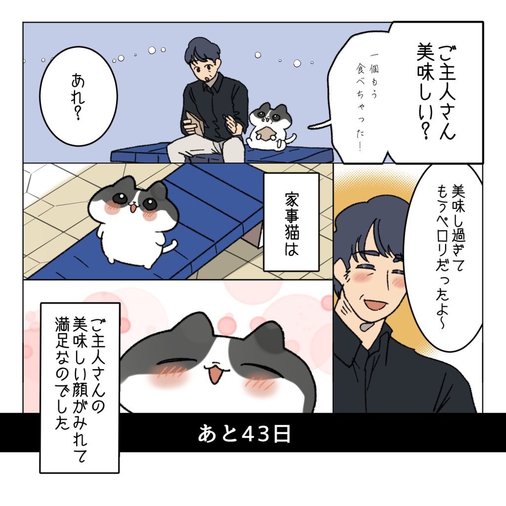 スポンサーリンクおすすめ記事マタハラする上司のせいで会社が死ぬほど嫌い【112...バーで「うっせぇわ」を歌ったら陽キャの洗礼を浴びる...【1】一人になった家事猫のこれから連載一覧AmazonKindle作品 【あと43日】100日後に死ぬ難病の夫と100日後にひとりぼっちになる猫2025.11.192025.11.23スポンサーリンク1話目から前のお話 他の連載も見てね広告 ここはすごいおすすめだけど朝でも並んじゃうくらいすごすごなお店なのです 続きます…次の更新のお話はこちら広告上の画像TAPすると次のお話へ飛べますAmazonKindleにて31話まで無料で読めます6