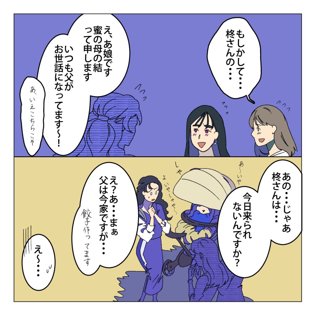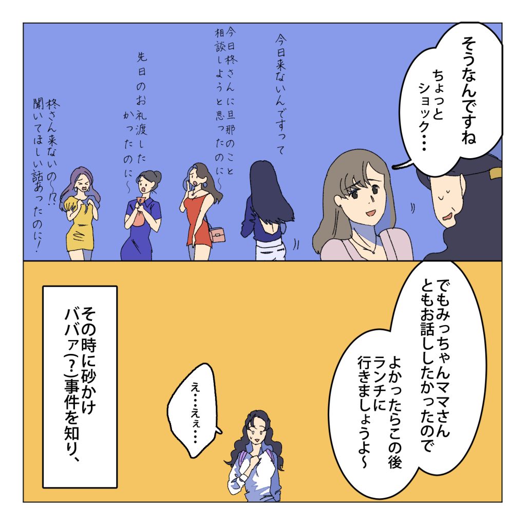嫁ちゃん「この二人は田茂(たも)さんと粉木(こなき)さん4話目から登場してるモブママさんたち」