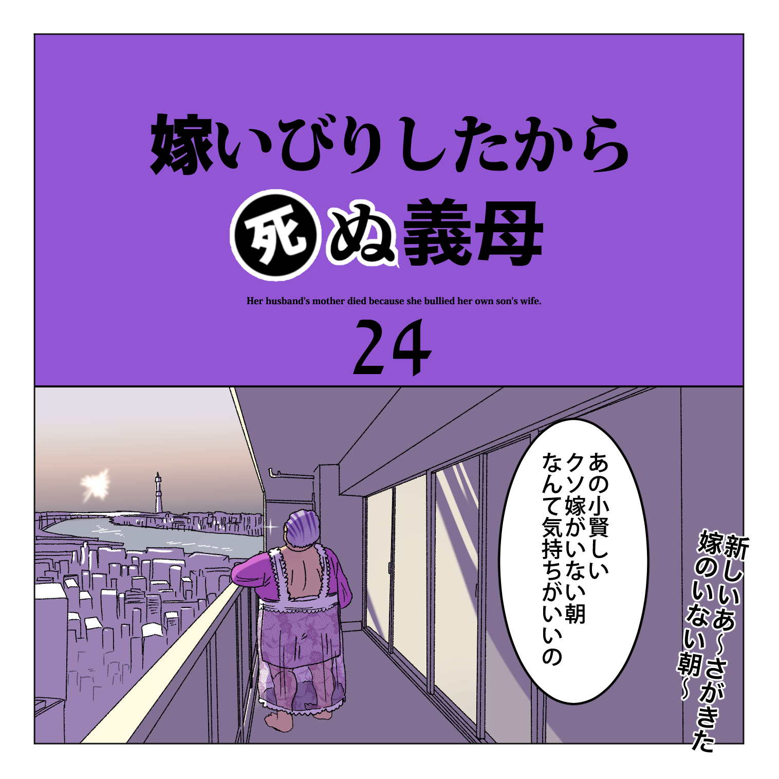 スポンサーリンクおすすめ記事明るい髪色の素敵おばあになりた〜いマタハラする上司のせいで会社が死ぬほど嫌い【112...【1】一人になった家事猫のこれから連載一覧AmazonKindle作品 嫁いびりしたから死ぬ義母【25】2024.10.042024.10.13スポンサーリンク嫁いびりしたから死ぬ義母の一話目はこちら嫁いびりしたから死ぬ義母【1】【家事しないと死ぬ旦那】ぜひこちらもご覧ください 前回のお話はこちら嫁いびりしたから死ぬ義母【24】【家事しないと死ぬ旦那】ぜひこちらもご覧ください 広告嫁ちゃん「わ〜い!1話目以来の嫁ちゃんの両親だ〜」嫁ちゃん「なんだと!?私は良くてもうちの両親の悪口は許せない!」広告嫁ちゃん「クソって言いかけたな〜このクソ義母・・・!」.嫁ちゃん「義母のせいで嫁ちゃんが病院送りになったのでこれから嫁ちゃんの両親が旦那くんと義母の愛(魔)の巣?に進撃だ〜」次の更新のお話はこちら嫁いびりしたから死ぬ義母【26】【家事しないと死ぬ旦那】ぜひこちらもご覧ください10月5日17時ごろに更新します他のおすすめのシリーズはこちら家事しないなら離婚だから【1】【家事しないと死ぬ旦那】ぜひこちらもご覧ください 旦那くんには弟がいた【1】【家事しないと死ぬ旦那】ぜひこちらもご覧ください 家事しないと死ぬ嫁ちゃん【1】ぜひこちらもご覧ください 広告簓さんは普通の彼氏が欲しい【1】ぜひこちらもご覧ください 砂かけババァ公園に現る【1】【孫が可愛くて死んじゃうじじぃ】ぜひこちらもご覧ください 嫁いびりしたから死ぬ義母【1】【家事しないと死ぬ旦那】ぜひこちらもご覧ください 【Amazon Kindle版無料で公開中です】10年も付き合ったから結婚したい結は大好きだった母の死をきっかけに自殺をしようと試みますがそれを助けてくれたのが秋君だった。結は命を助けてくれた秋君に運命を感じますがこの秋君とんでもないモラハラクズ野郎だった!?令和なのに家事しないクズ男どもは制裁!スカッと系漫画家事しないと死ぬ旦那1高学歴高収入高身長イケメンだけどクソモラ男とうっかり結婚してしまった嫁ちゃんモラ仕草したくせに離婚するって言い出したらロミオって嫁ちゃんに迷惑かけるしで誰がこの男を止めて!!家事しないと死ぬ旦那2とんでもモラハラ男の旦那くんとその旦那くんと長男教で旦那くんを寵愛する毒親に苦しめられた弟くんとの戦い!!その決着は・・・「女に立たせてもらわなきゃ立てねーような男はぶっ倒れてろ!!」広告簓さんは普通の彼氏が欲しい 簓さんは親が超大手法律事務所代表の由緒正しい弁護士の家系にして自身も有名お嬢様学校に通う超ハイスペ女子高生の簓さんの悩みは彼氏が欲しいことだった。でもそんな彼女の好きな男性の好みは『普通の彼氏!?』そんなこんなで簓さんの彼氏になった二十六木櫂くんは実は普通じゃない彼氏で・・・!?3
