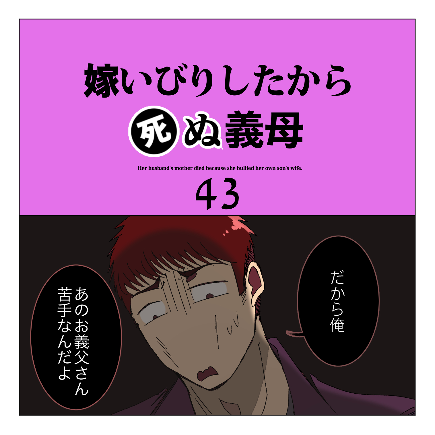 スポンサーリンクおすすめ記事明るい髪色の素敵おばあになりた〜いマタハラする上司のせいで会社が死ぬほど嫌い【112...【1】一人になった家事猫のこれから連載一覧AmazonKindle作品 嫁いびりしたから死ぬ義母【42】2024.10.232024.10.25スポンサーリンク嫁いびりしたから死ぬ義母の一話目はこちら嫁いびりしたから死ぬ義母【1】【家事しないと死ぬ旦那】ぜひこちらもご覧ください 前回のお話はこちら嫁いびりしたから死ぬ義母【40】【家事しないと死ぬ旦那】ぜひこちらもご覧ください 広告嫁ちゃん「我が旦那とは言えなんて情けない男なの」広告.嫁ちゃん「嫁ちゃんパッパモラ男駆除は熊よりも厄介な獣害であったと思い知る」嫁ちゃん「と言うことで次回から現代(?)に戻って嫁ちゃんが緊急搬送されて秋田から嫁ちゃんパッパとマンマが旦那君宅に乗り込むところ(26話)の続きからスタートです。」次の更新のお話はこちら嫁いびりしたから死ぬ義母【43】【家事しないと死ぬ旦那】ぜひこちらもご覧ください 他のおすすめのシリーズはこちら家事しないなら離婚だから【1】【家事しないと死ぬ旦那】ぜひこちらもご覧ください 旦那くんには弟がいた【1】【家事しないと死ぬ旦那】ぜひこちらもご覧ください 広告家事しないと死ぬ嫁ちゃん【1】ぜひこちらもご覧ください 簓さんは普通の彼氏が欲しい【1】ぜひこちらもご覧ください 砂かけババァ公園に現る【1】【孫が可愛くて死んじゃうじじぃ】ぜひこちらもご覧ください 嫁いびりしたから死ぬ義母【1】【家事しないと死ぬ旦那】ぜひこちらもご覧ください 【Amazon Kindle版無料で公開中です】10年も付き合ったから結婚したい結は大好きだった母の死をきっかけに自殺をしようと試みますがそれを助けてくれたのが秋君だった。結は命を助けてくれた秋君に運命を感じますがこの秋君とんでもないモラハラクズ野郎だった!?令和なのに家事しないクズ男どもは制裁!スカッと系漫画家事しないと死ぬ旦那1高学歴高収入高身長イケメンだけどクソモラ男とうっかり結婚してしまった嫁ちゃんモラ仕草したくせに離婚するって言い出したらロミオって嫁ちゃんに迷惑かけるしで誰がこの男を止めて!!広告家事しないと死ぬ旦那2とんでもモラハラ男の旦那くんとその旦那くんと長男教で旦那くんを寵愛する毒親に苦しめられた弟くんとの戦い!!その決着は・・・「女に立たせてもらわなきゃ立てねーような男はぶっ倒れてろ!!」簓さんは普通の彼氏が欲しい 簓さんは親が超大手法律事務所代表の由緒正しい弁護士の家系にして自身も有名お嬢様学校に通う超ハイスペ女子高生の簓さんの悩みは彼氏が欲しいことだった。でもそんな彼女の好きな男性の好みは『普通の彼氏!?』そんなこんなで簓さんの彼氏になった二十六木櫂くんは実は普通じゃない彼氏で・・・!?3