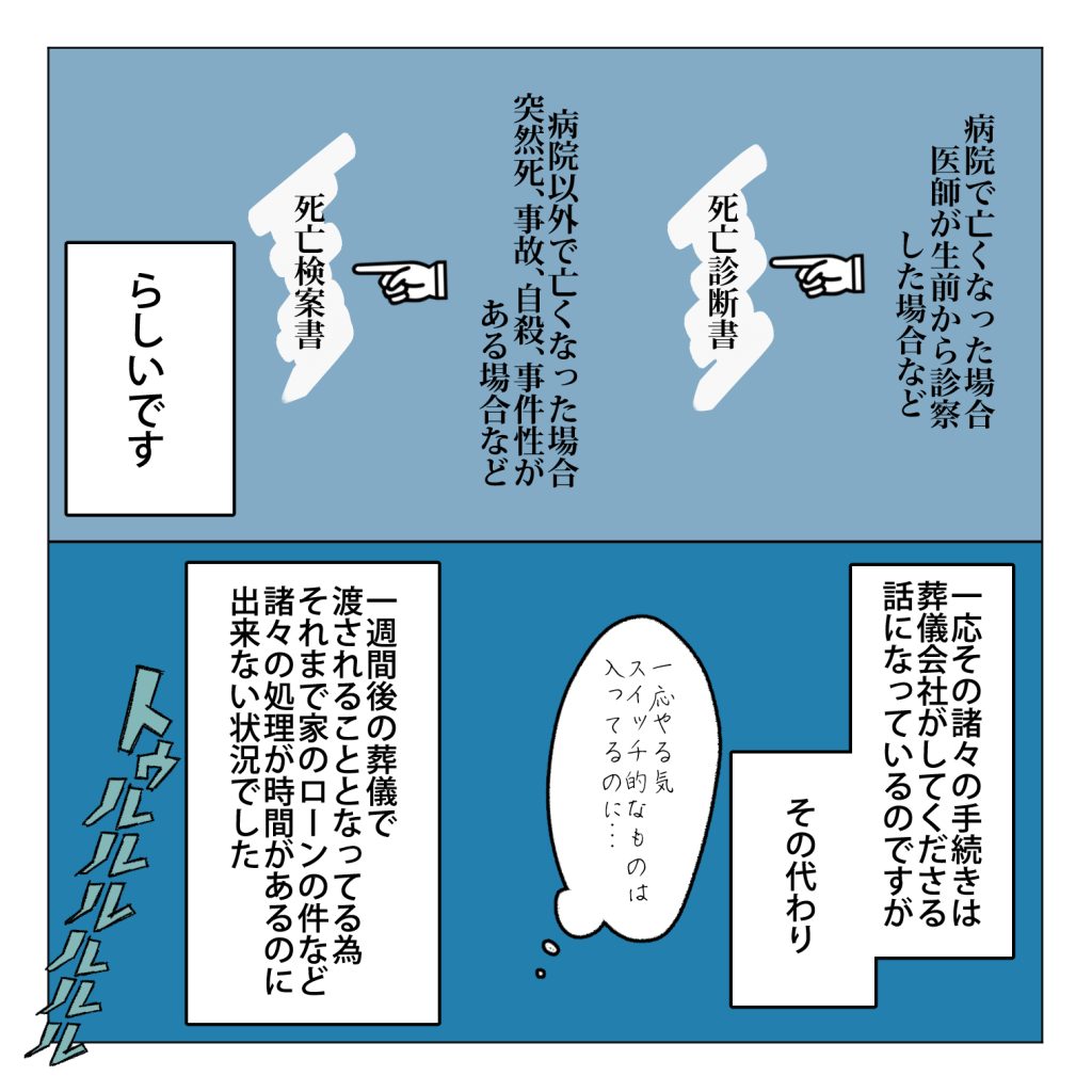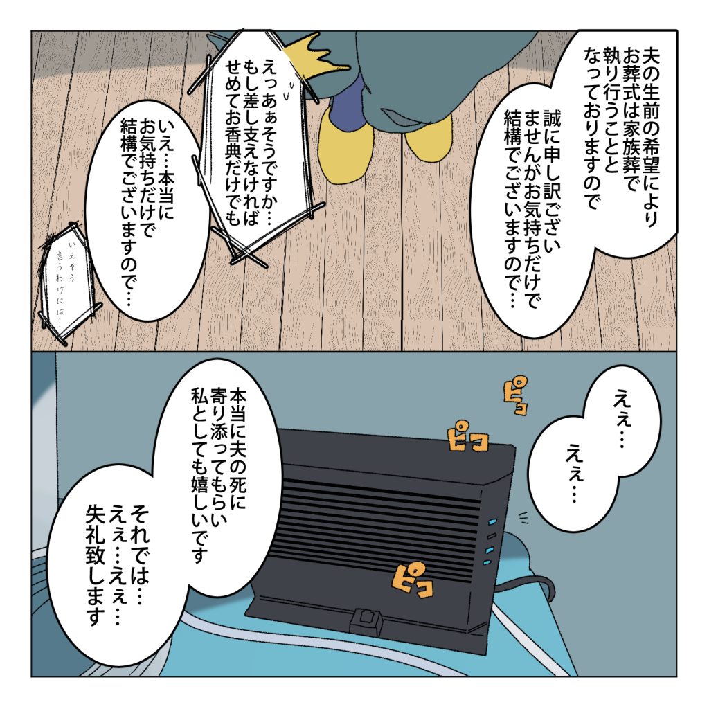 スポンサーリンクおすすめ記事マタハラする上司のせいで会社が死ぬほど嫌い【114...マタハラする上司のせいで会社が死ぬほど嫌い【113...明るい髪色の素敵おばあになりた〜い【1】一人になった家事猫のこれから連載一覧 夫の骨壷をうちのお墓に入れるまでお静かにしてください【13】2025.03.132025.04.01スポンサーリンク前のお話夫の骨壷をうちのお墓に入れるまでお静かにしてください【12】こちらのお話は家事しないと死ぬ旦那を描いてる人のリアル絵日記です詳細についてはこちらの家事しないと死ぬ旦那を描いてる人の話をご覧ください他のお話も是非ご覧ください死んだ夫からのクリスマスプレゼント【1】家事しないと死ぬ旦那を描いてる人の夫が死ぬ前に描いてる人に言った願い【1】他の連載もご覧下さい 広告家事しないから逮捕される旦那【39】 広告 広告 ちょっと未完成ですちょいちょい直します…次の更新のお話はこちら夫の骨壷をうちのお墓に入れるまでお静かにしてください【14】 12