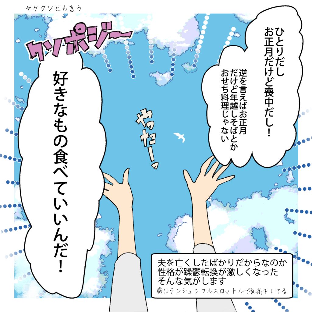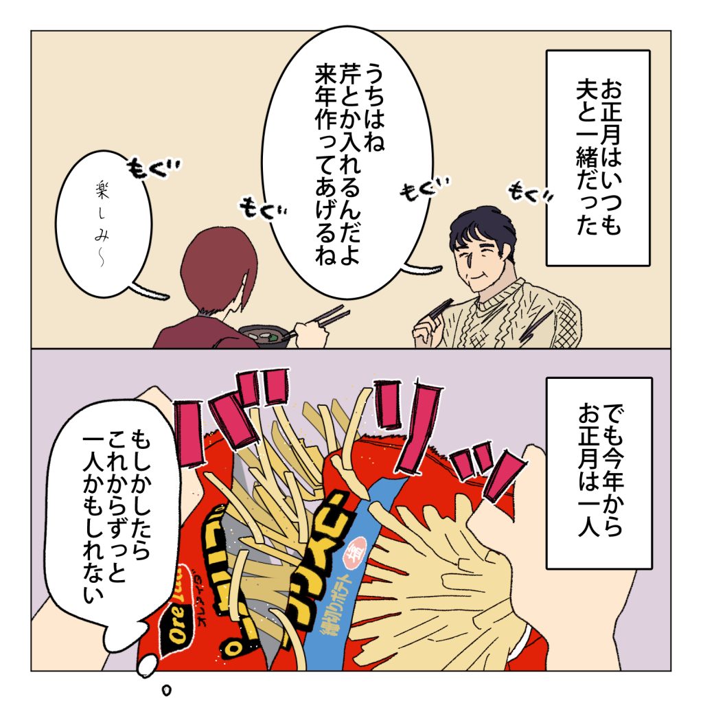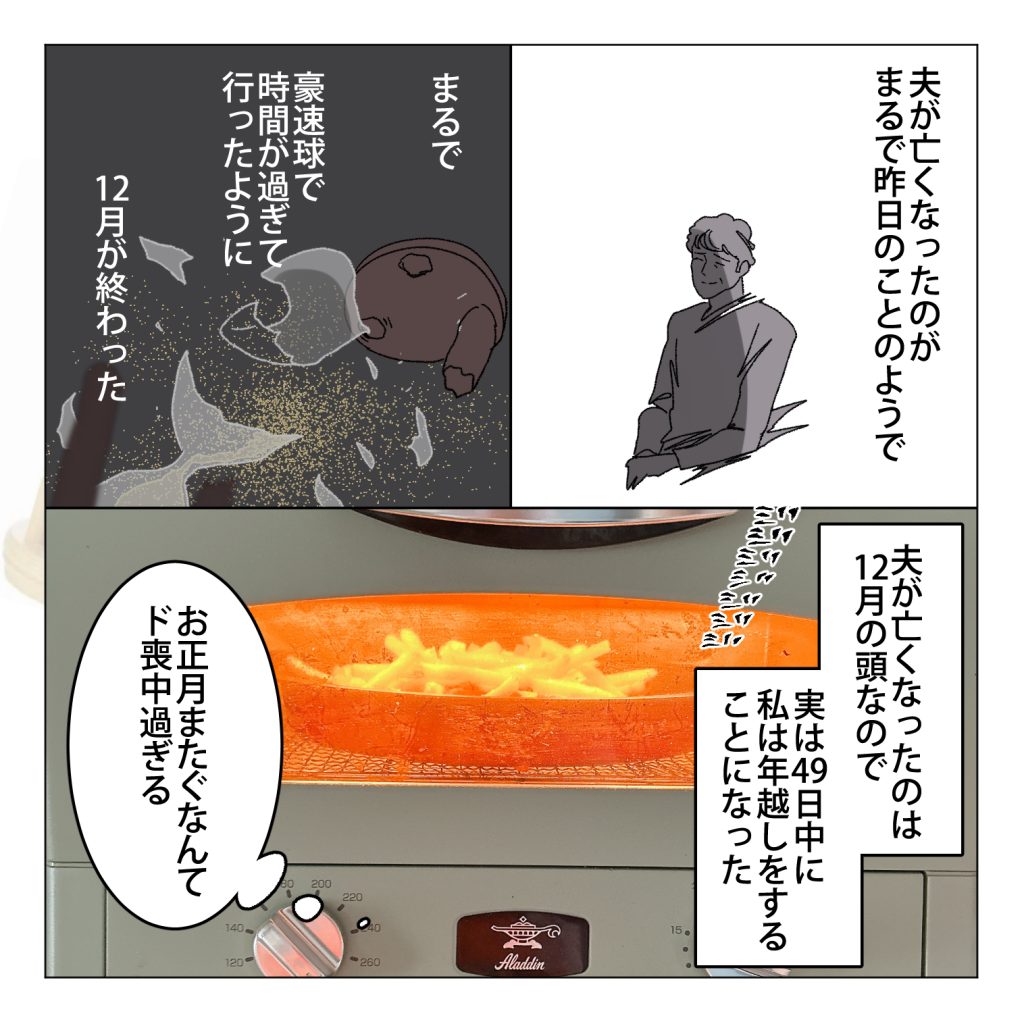夫が亡くなった後にクソ陽キャで交友関係の広い夫の友人のせいでめちゃくちゃ精神ぶっ壊れた話。たまに一人でパニックになったり一人でシクシクしてるけどなんだかんだ自分の機嫌を自分でとるしかない家事しないと死ぬ旦那を描いてる人の話。