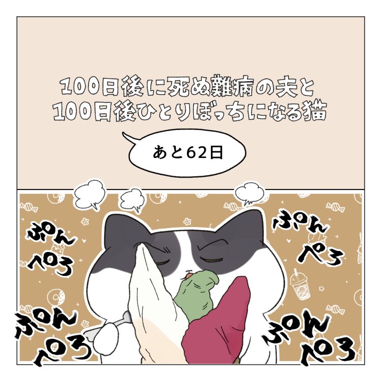 100日後に死ぬ難病の夫と100日後にひとりぼっちになる猫【あと62日】100日後に死ぬ難病の夫と100日後にひとりぼっちになる猫 この漫画は難病で辛い思いをした夫を肯定するために漫画を描きました。また夫がいない今を生きる自分を肯定するために漫画にしました。 1番はじめのお話 前のお話 他の連載も見てね 結局家事猫は美味しいもの食べたらすぐさまご機嫌なのです! 続きま... 2025.10.12100日後に死ぬ難病の夫と100日後にひとりぼっちになる猫