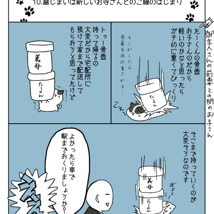 家事猫是好日【10】墓じまいは新しいお寺さんとのご縁のはじまり このお話は家事しないと死ぬ旦那を猫いてる人の大切な人を失ってから新しい人生へ歩き始めるまでの日々を綴った9割ほんとでちょこっと不思議なお話のエッセイ漫画です。 大切な人やものを失ったり人生につまづいたり、悲しいことがあって立ちなれなくなった... 2026.03.07家事猫是好日