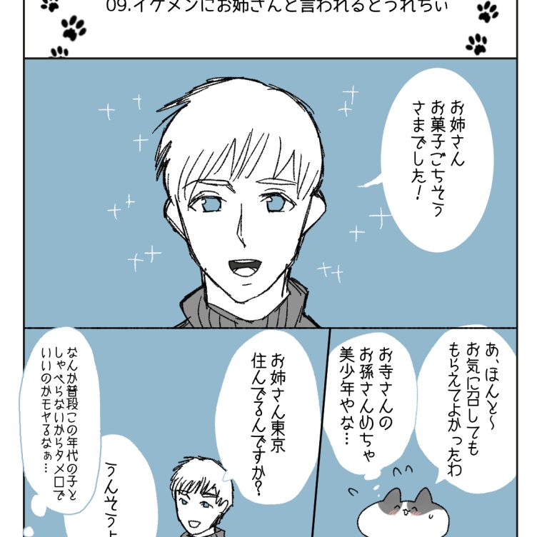 家事猫是好日【9】イケメンにお姉さんと言われるとうれちい このお話は家事しないと死ぬ旦那を猫いてる人の大切な人を失ってから新しい人生へ歩き始めるまでの日々を綴った9割ほんとでちょこっと不思議なお話のエッセイ漫画です。 大切な人やものを失ったり人生につまづいたり、悲しいことがあって立ちなれなくなった... 2026.03.05家事猫是好日
